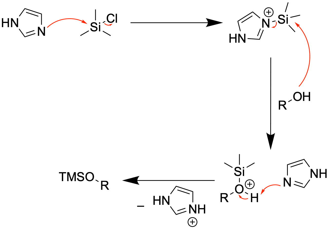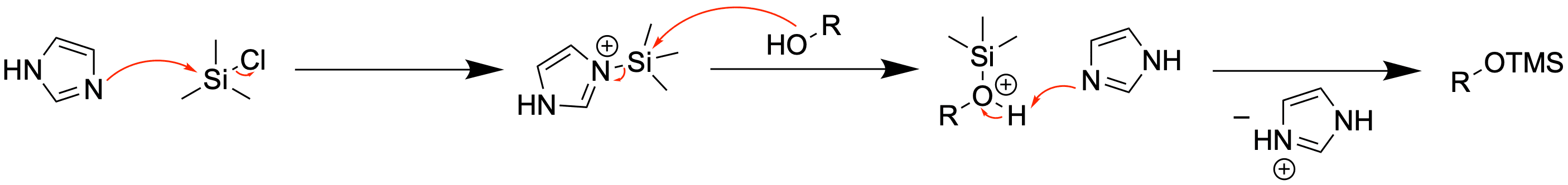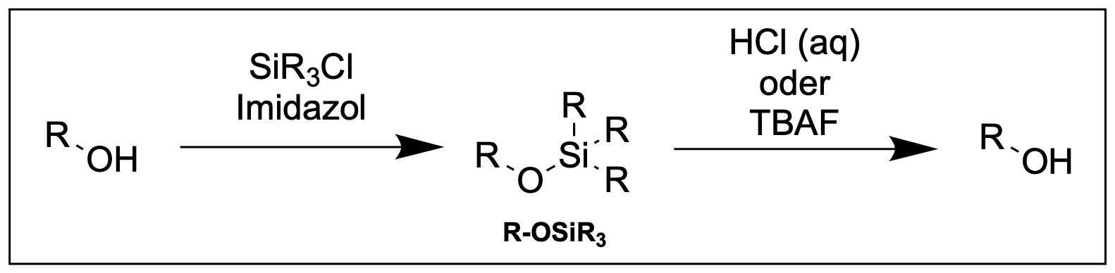 Zur Schützung wird das Silylchlorid in Anwesenheit von Imidazol verwendet. Letzteres agiert als Base und als nucleophiler Katalysator.
